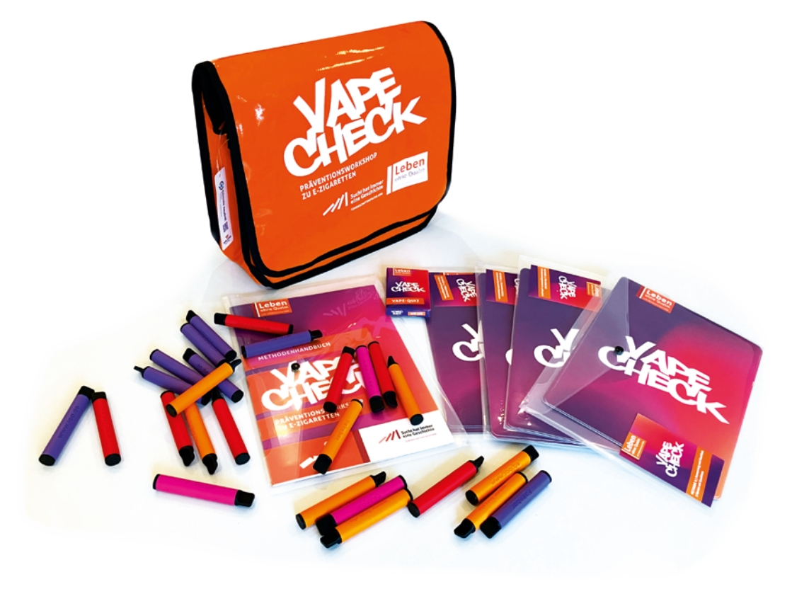 Bei "Vape Check" handelt es sich um einen 90-minütigen Präventionsworkshop rund um E-Zigaretten mit einem besonderen Fokus auf Einwegprodukten. Er richtet sich an die Jahrgangsstufen 6 - 8. „Vape Check“ bietet altersgerechte Methoden zur Wissensvermittlung rund um das Thema Vaping. Neben einer kleinen Stoffkunde werden Gesundheitsrisiken und Safer-Use-Strategien sowie die ökologische Dimension vermittelt. Die Teilnehmenden werden eingeladen, die mögliche eigene Faszination für den „Vape-Trend“ gemeinsam zu reflektieren. Der Workshop zielt darauf ab, einen kritischen Standpunkt gegenüber E-Zigaretten zu vermitteln und Nichtkonsumierende in ihrer Haltung zu stärken.