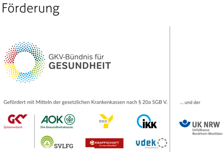 Das Modellprojekt wird gefördert mit Mitteln der gesetzlichen Krankenkassen nach § 20a SGB V und der Unfallkasse NRW.