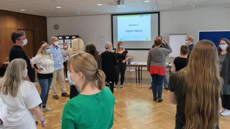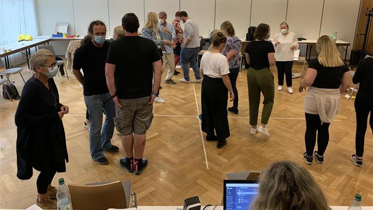 In der letzten Woche haben sich 20 Mitarbeitende aus der Suchtprävention und Beratung zu Trainerinnen und Trainern der Motivierenden Kurzintervention ausbilden lassen. Das Seminar fand im Tagungshaus des Landessportbundes Hessen statt, direkt zwischen Frankfurter Waldstadion und der Zentrale des deutschen Fußballbundes. Ein passender Ort für das bewegte und in Bewegung bringende MOVE!