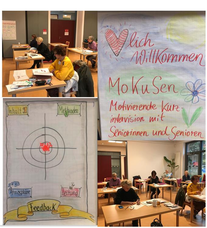 Die durch die Corona-Pandemie ausgelöste Krise hat auch die Pläne des Fortbildungsangebots "MoKuSen" - Motivierende Kurzintervention mit Seniorinnen und Senioren - in diesem Jahr durchkreuzt. Mit einem strikt eingehaltenen Hygienekonzept konnte zu unserer großen Freude vergangene Woche eine Schulung für Teilnehmer*innen aus der Altenhilfe und Seniorenarbeit stattfinden.