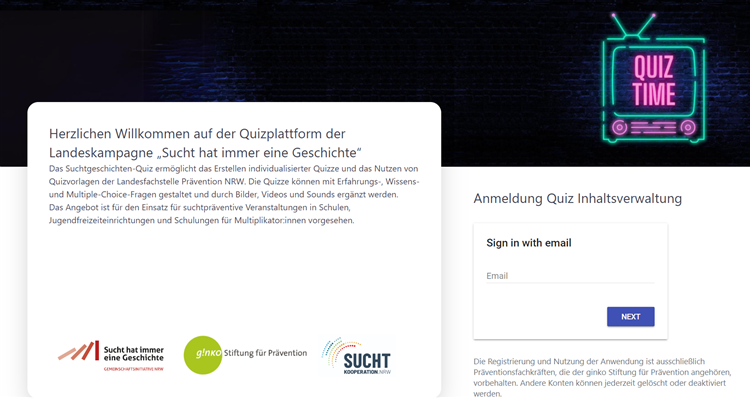 Seit Dezember 2023 steht die Plattform QuizTime der Landeskampagne "Sucht hat immer eine Geschichte" den Fachkräften für Suchtprävention des Landes NRW zur Verfügung.