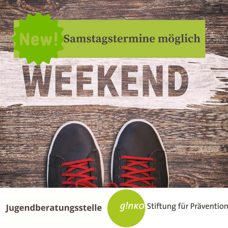 Die Jugendberatungsstelle der ginko Stiftung für Prävention bietet ab sofort auch samstags Termine an. Schule, Ausbildung, Studium oder Arbeit lassen in der Woche oft kaum Zeit und Ruhe für eine Beratung, deshalb gibt es nun auch an Samstagen Beratungstermine. Junge Menschen zwischen 14 und 26 Jahren sowie ihre Bezugspersonen können nach vorheriger Terminvereinbarung in die Beratungsstelle kommen, die Beratung ist kostenlos, unabhängig, anonym und vertraulich.