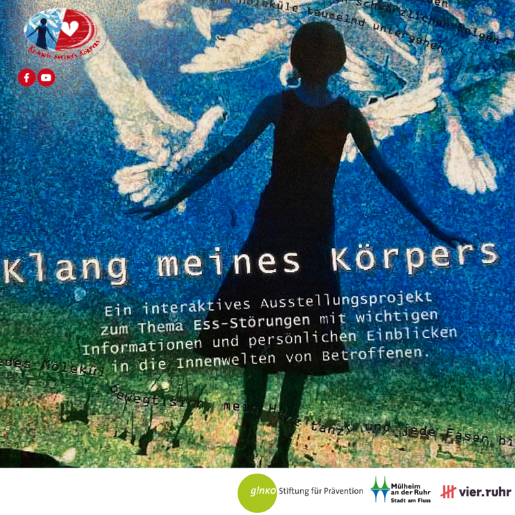 Eltern, Verwandte, Lehrkräfte und Mitschüler:innen sind beim Thema Essstörungen oft ratlos oder überfordert. Aufklärung und Prävention für Jugendliche sowie Hilfen für Bezugspersonen sind umso wichtiger. Denn je eher eine Essstörung entdeckt wird, desto besser sind die Verlaufschancen. Sensibilisieren und aufklären – das möchte die Ausstellung „Klang meines Körpers“. Der besondere Ansatz der Ausstellung besteht im emotionalen und kreativen Zugang zur Thematik, durch den die Besucher:innen u. a. die Möglichkeit haben, in die Innenwelt der Betroffenen einzutauchen und durch den die verschiedenen Sinne angesprochen und berührt werden.
